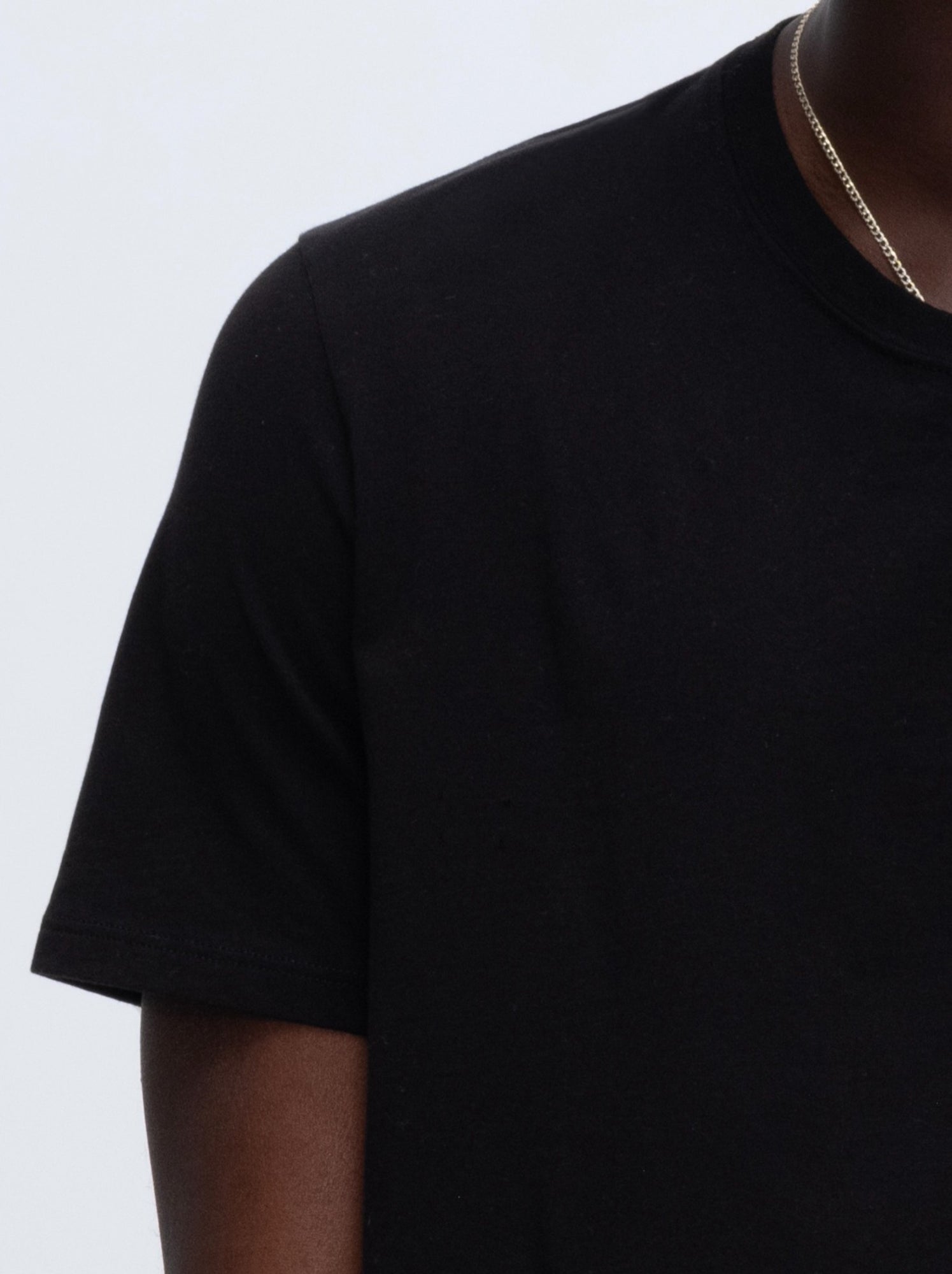 The Classic Jersey Crew Neck Tee features a banded neckline and a slightly fitted silhouette. The modest drape. straight cut hem and meticulously measured neckline offer an elevated take on the classic silhouette.