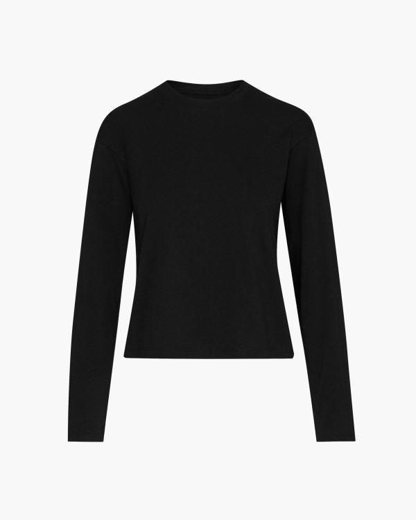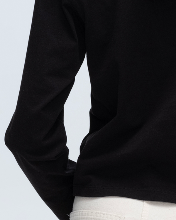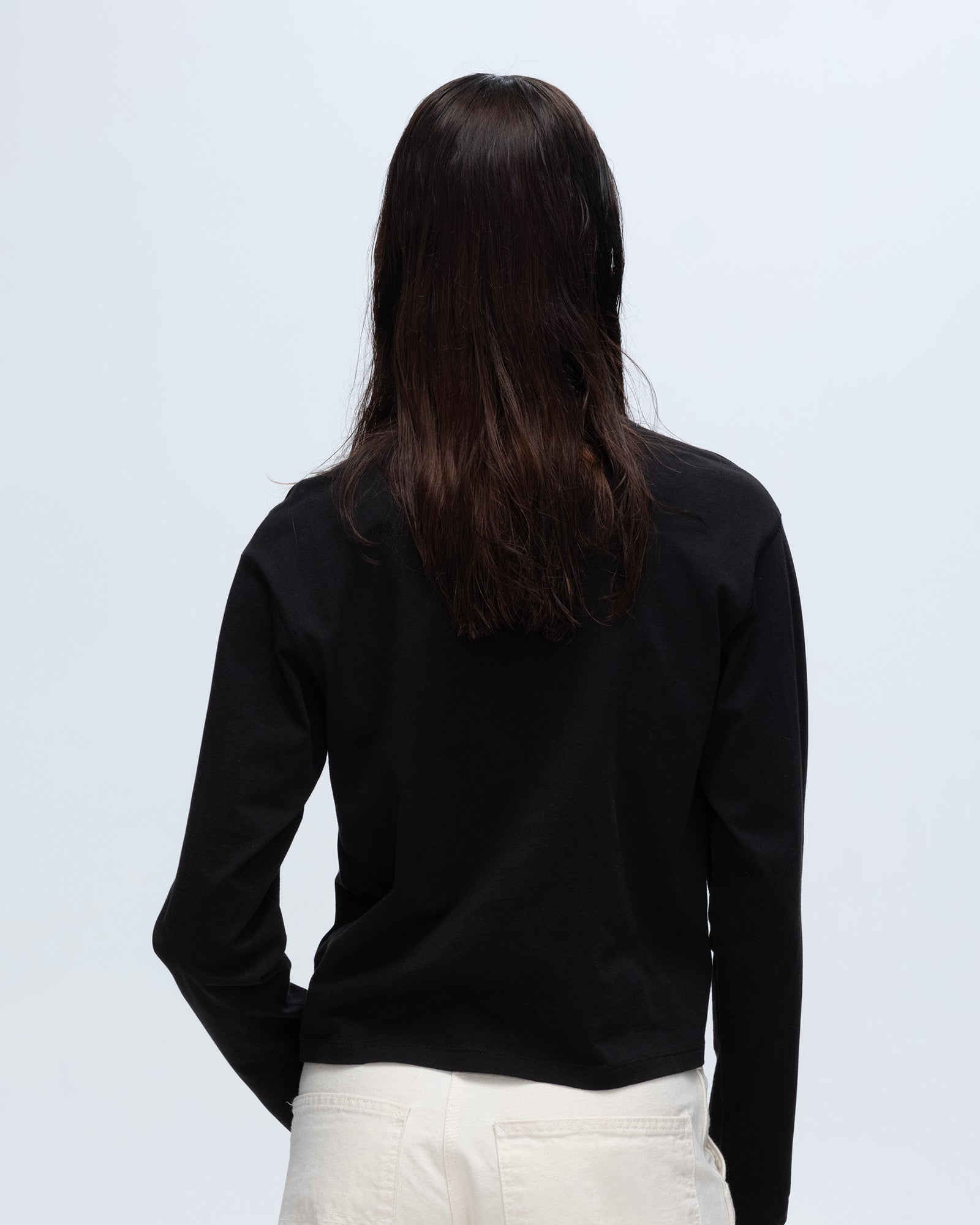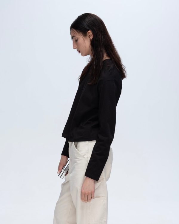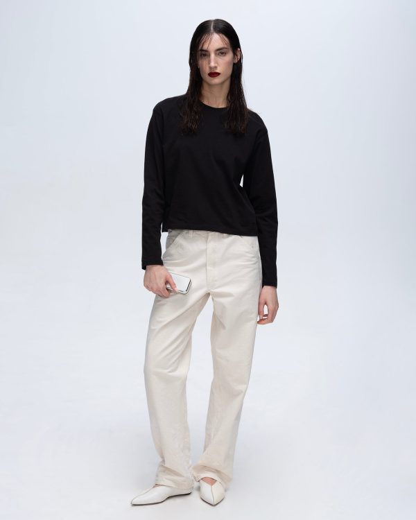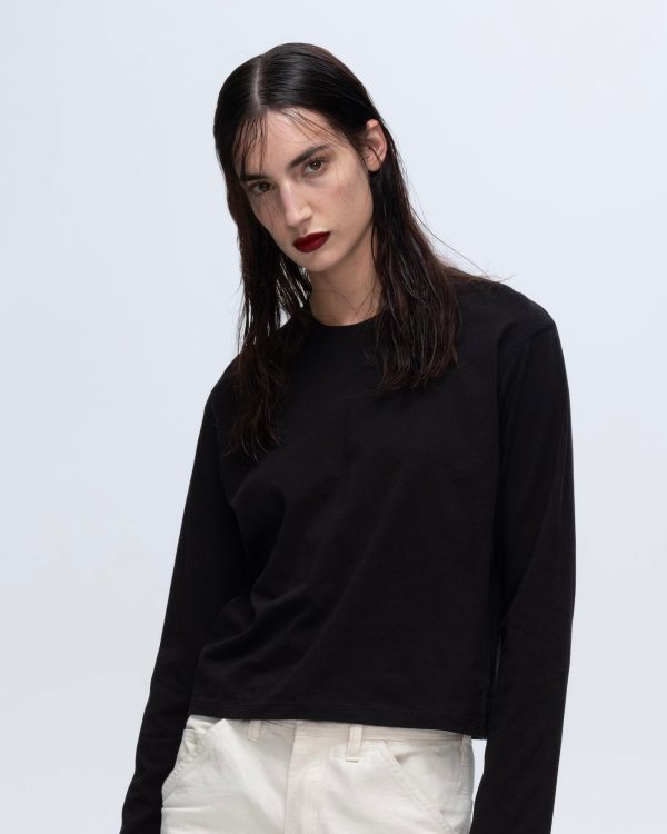 The Classic Jersey Long Sleeve Boy Tee is done in a luxe cotton jersey. It combines the weight and shape of a men’s tee with the fit of a women’s piece. It features a slightly cropped. boxy shape with longer and wider cut sleeves.