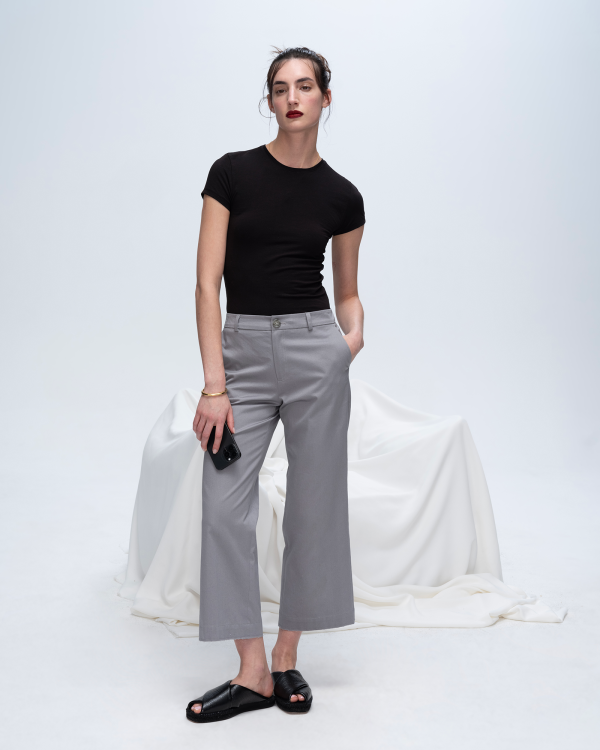 The Pima Cotton and Spandex blend of the Baby Tee are woven into a super shrunken silhouette. This sleek tee is inimitably soft with extra stretch. It is the ultimate everyday basic that molds to the body like a second skin.