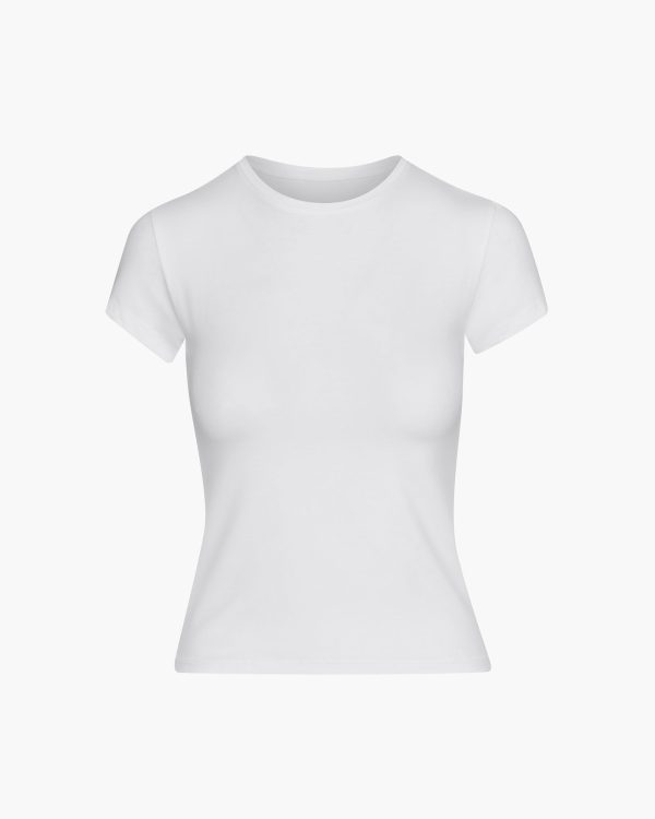 The Pima Cotton and Spandex blend of the Baby Tee are woven into a super shrunken silhouette. This sleek tee is inimitably soft with extra stretch. It is the ultimate everyday basic that molds to the body like a second skin.