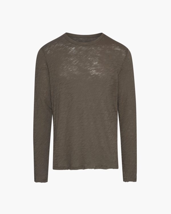Slub Jersey Long Sleeve Destroyed Wash Tee – Army