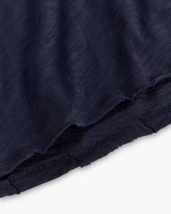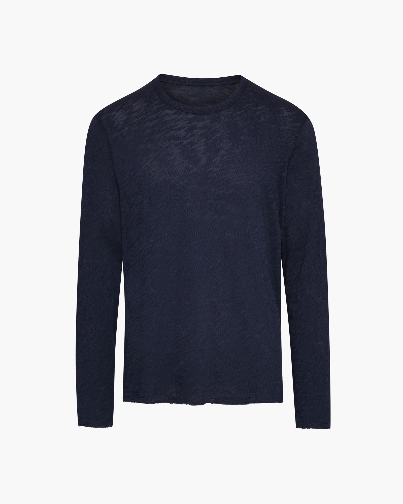 The Slub Jersey Long Sleeve Destroyed Wash Crew is ATM’s personal favorite piece from the core collection. This top-selling slub tee gets its texture from the uneven yarns of our unique Peruvian Cotton. It features a relaxed crew neck. distressed hem and sleeve cuffs. and just the right amount of sheer. The loose weave of this heavier Cotton offers the perfect drape.