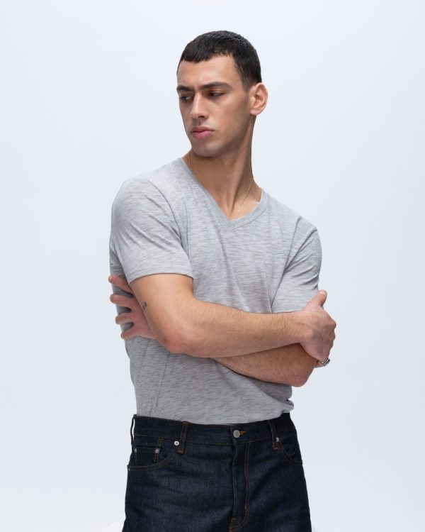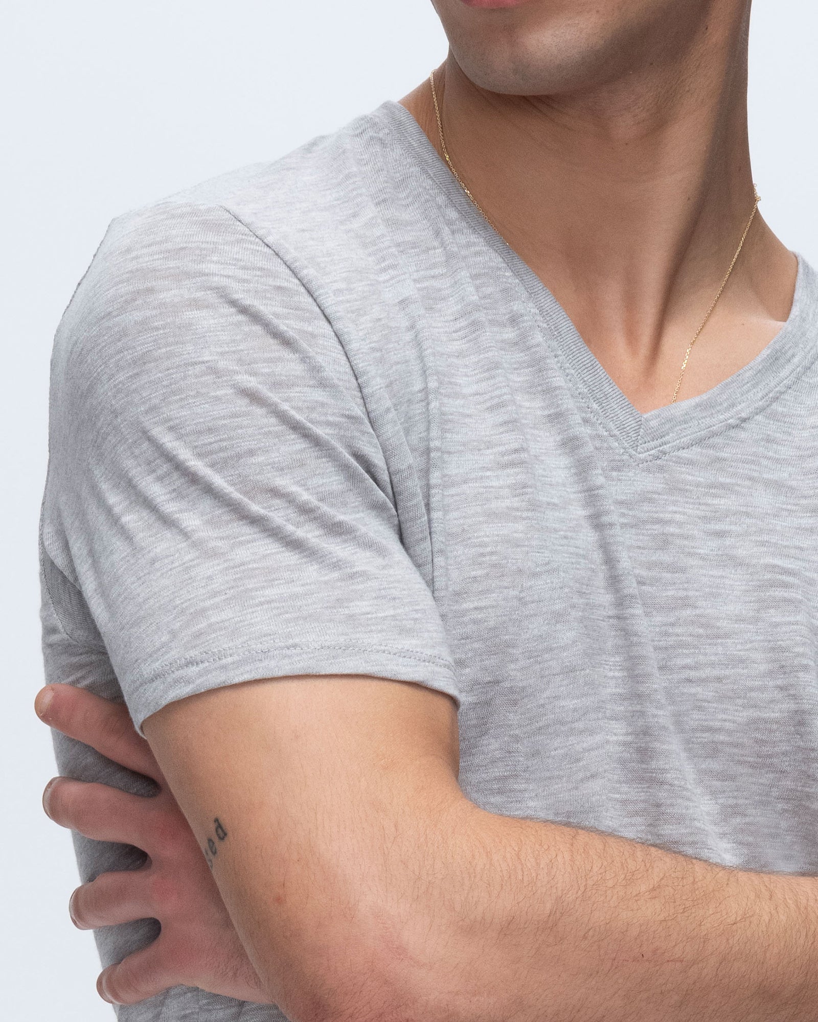 Be the first to review “Slub Jersey V-Neck Tee – Heather Grey”