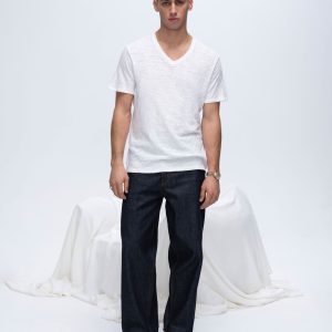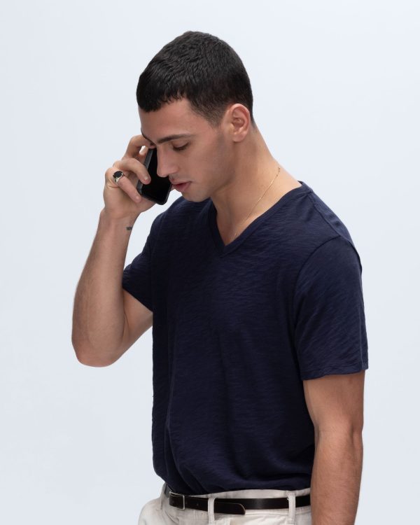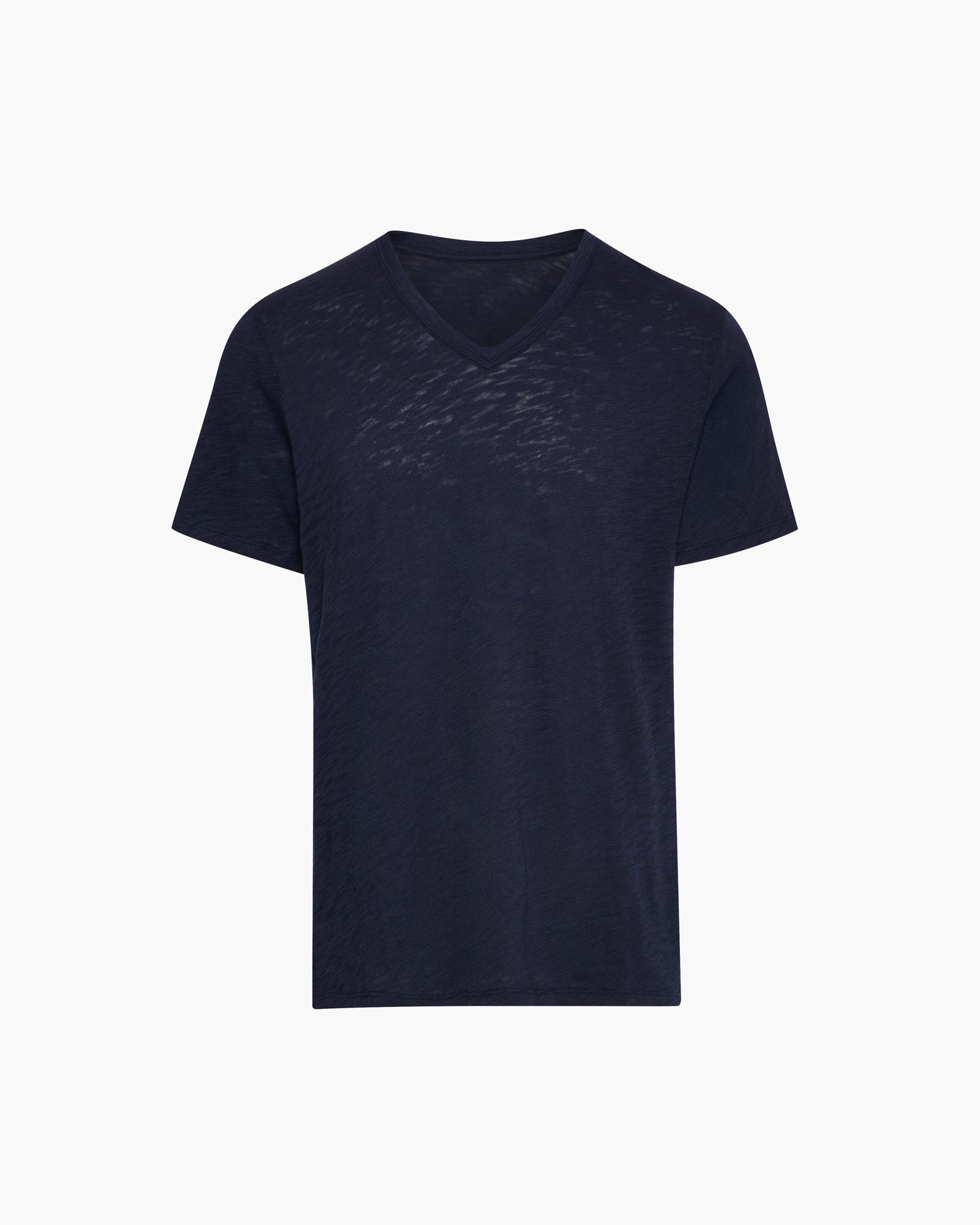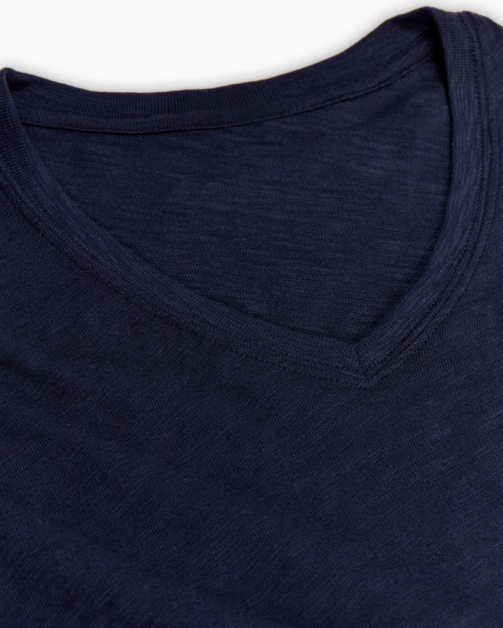 The Slub Jersey V-Neck Tee gets its texture from the uneven yarns of our unique Peruvian Cotton. It features a relaxed v-neck silhouette and just the right amount of sheer. The loose weave of this heavier Cotton molds modestly to the body offering the perfect drape.